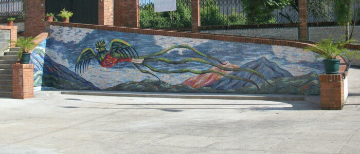 Mural del Quetzal (12 metros de largo) Iglesia San Pedro Nolasco, Ciudad San Cristobal, Mixco Guatemala